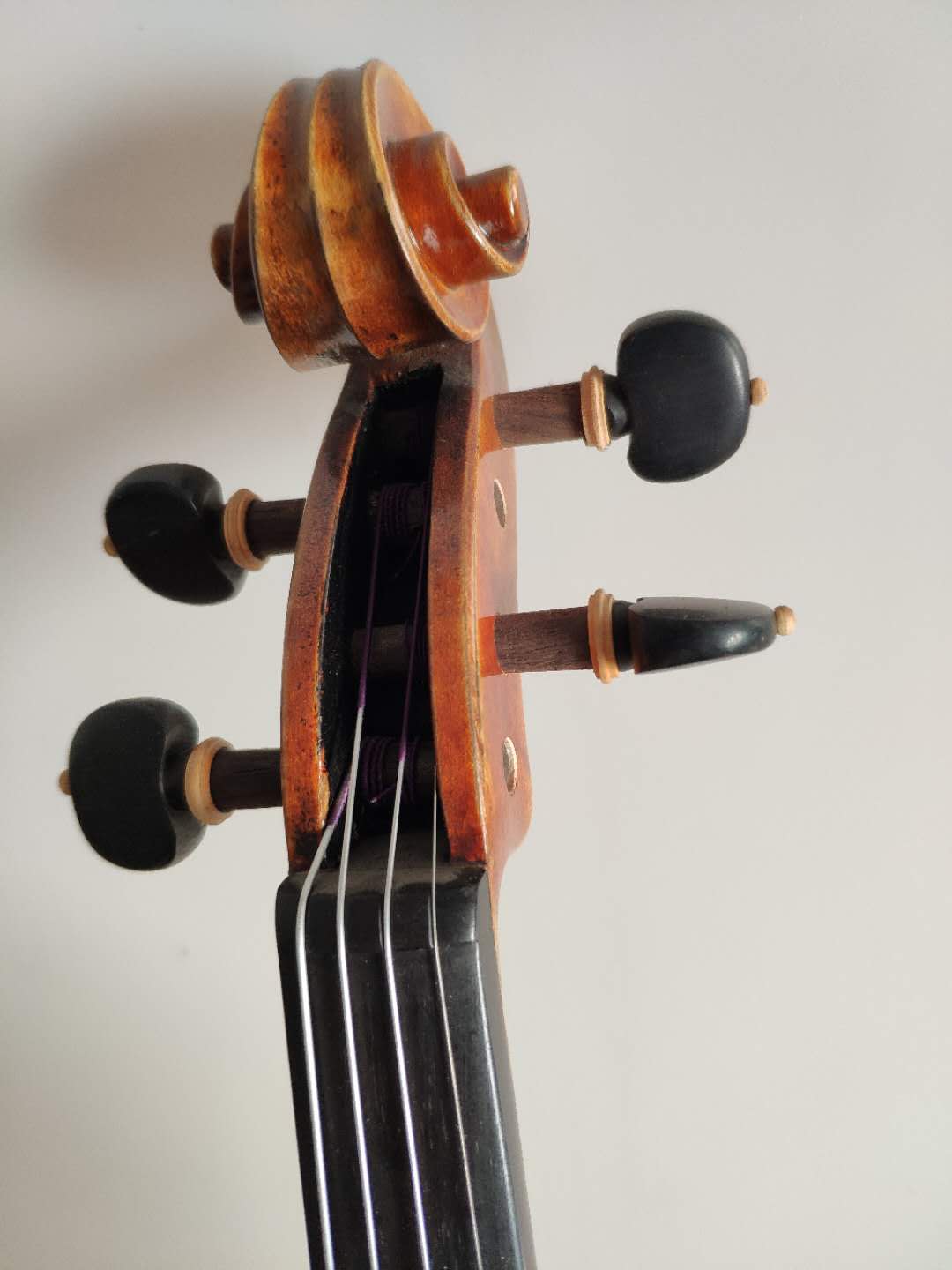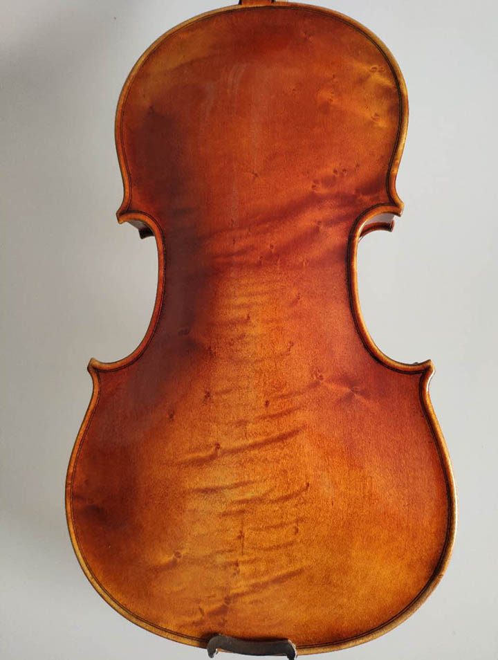 描述:背板是意大利的雀眼花紋的楓木,雀眼并不算很多,面板木質均勻,木紋的平均寬度在2.5毫米左右。油漆采用仿舊風格,顏色有深有淺,質感非常好。這把琴的聲音比較清晰干脆,婉轉悠揚,非常適合專業演奏和練習使用,更是當做禮物來贈送的不二之選。